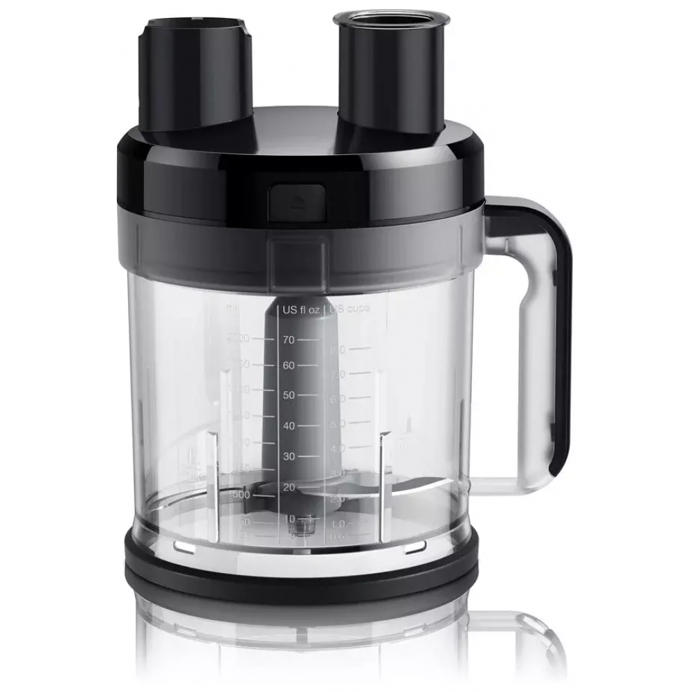 Система EasyClick, управление Smart Speed, технологии ActiveBlade и PowerBell Plus; в комплекте 13 насадок, насадки можно мыть в посудомоечной машине, объем комбайна 2 л, прорезиненная ручка